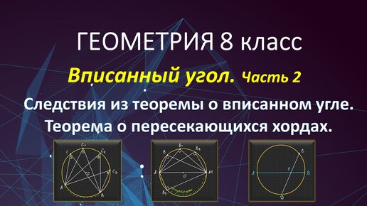 Геометрия 8. Вписанный угол. Часть 2. Следствия из теоремы о вписанном угле. Теорема о пересекающихся хордах.