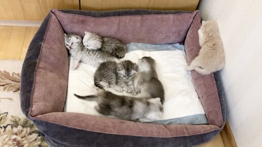 Сытые котята кошки Кайли 👸 готовятся ко сну. Котятам 22 дня.