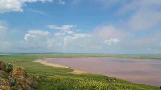 Дикие тюльпаны, цветущие в Опукском заповеднике и розовое Кояшское озеро. Крым, апрель 2024