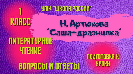 Урок 22 Н. Артюхова Саша-дразнилка / Литературное чтение 1 класс Климанова УМК "Школа России" Родителям и детям