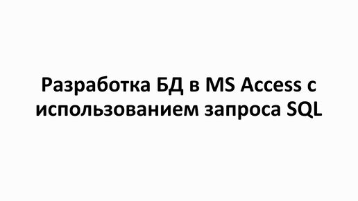 Информатика 10 класс. Практикум "Разработка БД в MS Access с использованием запроса SQL"