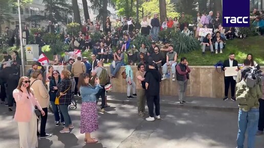 Акция протеста перед входом в здание парламента Грузии против принятия закона об иноагентах