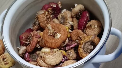 Подготовка гладиолусов к посадке. Пример здоровых луковиц. Обрезка подпорченных луковиц.