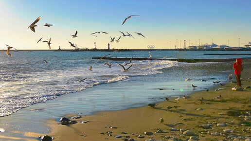 Сочи | Расслабляющее виды неспокойного моря и чаек (Февраль 2024)