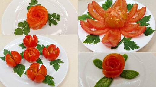 Цветы из помидоров - 4 способа. Как сделать розу из помидора. Украшения из овощей