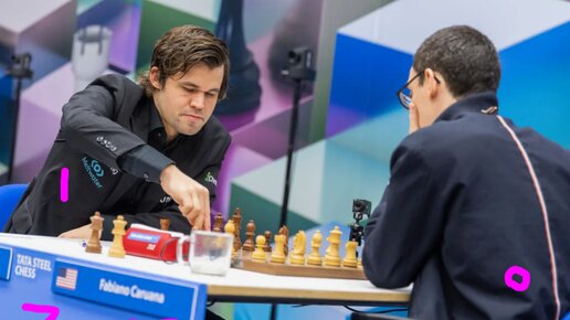 Партия великих шахматистов современности: Магнус Карлсен черными не без труда выиграл в сицилианке у Фаби Каруаны в Вейк-ан-зее, 2022, 0-1