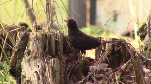 Весенний Чёрный Дрозд. Пение и поиск съестного.