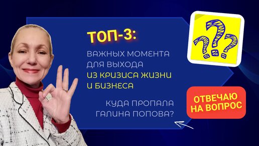 Топ 3 важных момента для выхода из трудной ситуации, из кризиса жизни и кризиса в бизнесе | Куда пропала Галина Попова?
