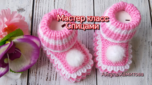 🌸Пинетки с узором кукуруза спицами. 🌸 Мастер класс 🌸