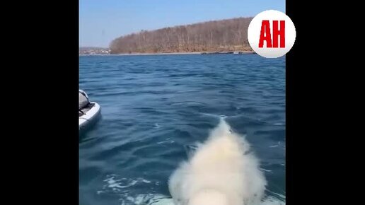 Игривую белуху встретили любители сап-прогулок в бухте Новик, Приморского края.