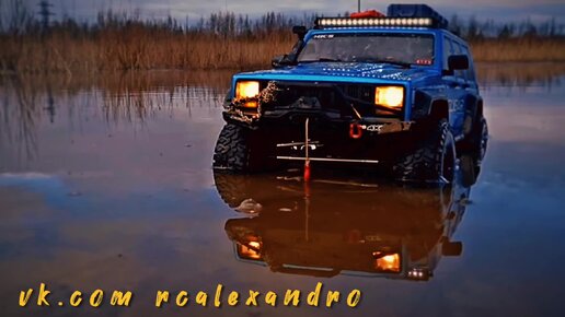 Water and mud game with four-wheel drive RC Jeep Cherokee