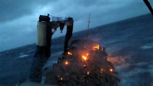 Пожар на палубе грузового судна | Горят автомобили на крышках трюмов | Плюс еще и штормовая погода