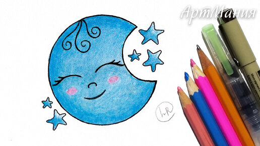 Как нарисовать милую луну со звездами