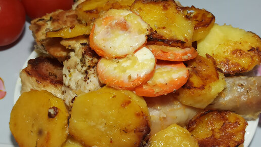 Курица с картошкой в духовке. Всегда получается румяная, красивая и очень вкусная!