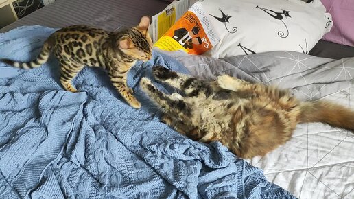 Драка бенгала и мейн-куна