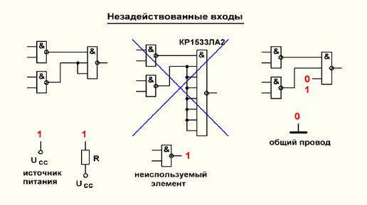 Видеоурок 2.25. Сокращение используемых микросхем. Незадействованные входы и элементы.
