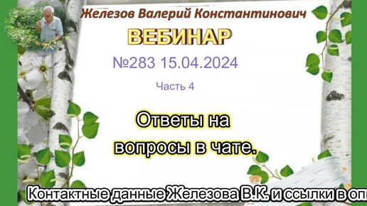 Железов Валерий. Вебинар 283. ч. 4. Ответы на вопросы в чате.