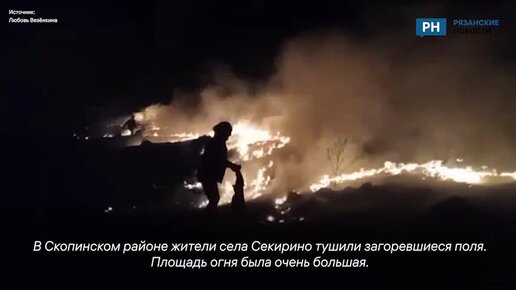 В Рязанской области жители села Секирино тушили загоревшиеся поля