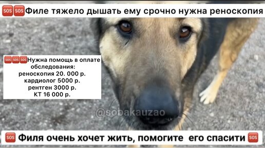 🆘🆘🆘НУЖНА ПОМОЩЬ ФИЛЕ ИЗ ПРИЮТА «Щербинка» в оплате реноскопии, собака задыхается!