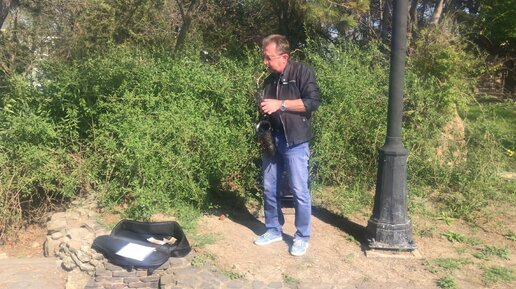 Уличный музыкант Игра на Саксафоне Анапа Пляж Высокий Берег