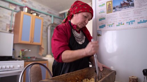 Жизнь в удмуртской деревне, приготовление традиционных удмуртских блюд. Перепечи в русской печи