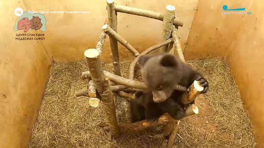 Спасенные медвежата-сироты Сирена и Соня покоряют новые высоты