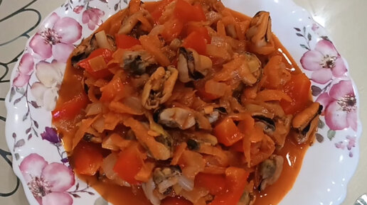Мидии, тушёные с овощами
