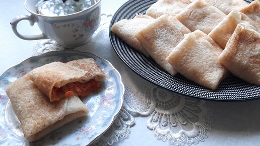 Постные БЛИНЧИКИ БЕЗ ЯИЦ И МОЛОКА тонкие и мягкие с необычной начинкой.