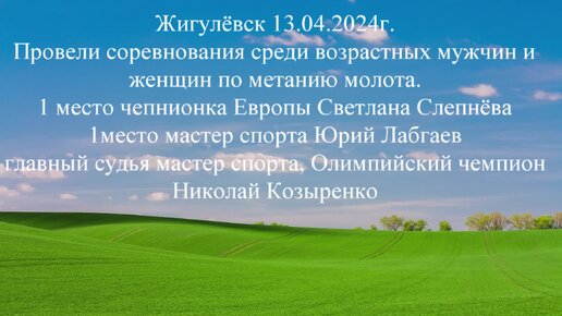 Жигулёвск 13.04.2024г. Соревнования по метанию молота среди возрастных мужчин и женщин.