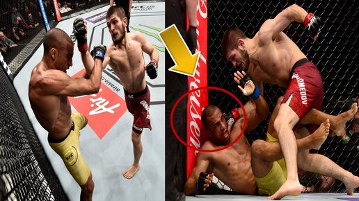 Хабиб ломает Барбозу. Вынужден убегать по клетке