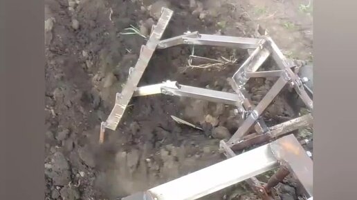 Круто получилось! Гребёнка на самодельный двухкорпусный плуг вместо бороны, для самодельного минитрактора. Испытание