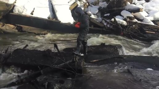 Тащим из воды гигантские трубы а также странный железный шкаф