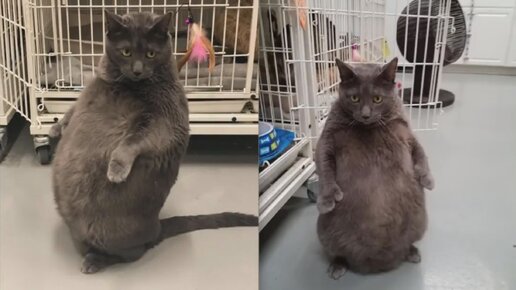 Толстый бездомный кот постоянно стоял на задних лапах, чтобы найти себе хозяина