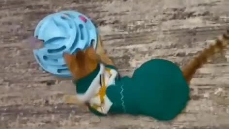 Персик любит играть с пирамидкой. Катает шарики с детства. 😺🍑