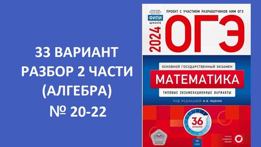 Вариант № 33 ОГЭ 2024 по математике из сборника Ященко 36 вариантов. Разбор 2 части. (алгебра). № 20-22. Готовимся вместе к ОГЭ 2024!!!