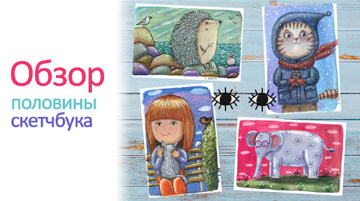 Обзор половины скетчбука. Листалка. Скетчбук тур.