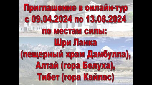 Онлайн-тур по местам силы (храм Дамбулла, гора Белуха, гора Кайлас) с 9 апреля 2024 года по 13 августа 2024 года