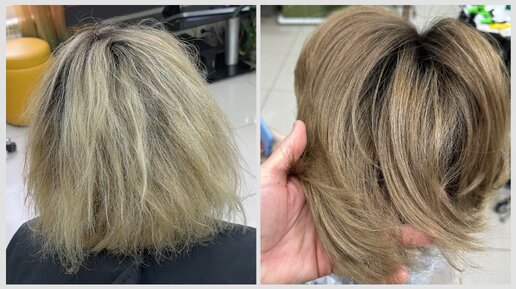 Закрашивание блонда в растяжку, с переходом от темных корней к светлым концам. Закрасить блонд без зелени. Тонирование волос