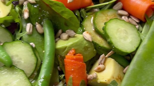 Зеленый салат с фасолью, горошком и авокадо