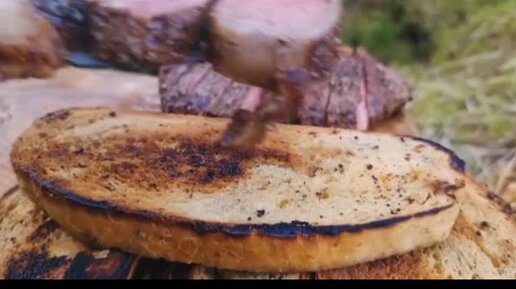 Стейк из мяса в горшочке с соусом чимичурри, подается с хрустящим поджаренным хлебом