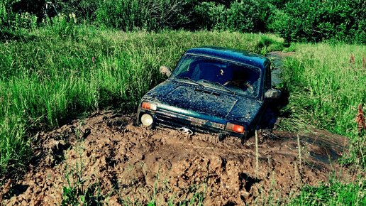 Нивоводам лучше не смотреть, Гранта вытаскивает Ниву из грязи