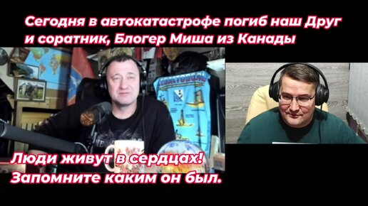 Сегодня в автокатастрофе погиб Блогер Миша из Канады. Люди живут в сердцах! Запомните каким он был.