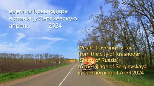 едем на авто из Краснодара (Юг России) в станицу Сергиевскую утром апреля 2024.