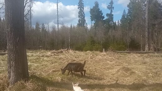 Выход в лес 20 апреля с козой и козлятами.