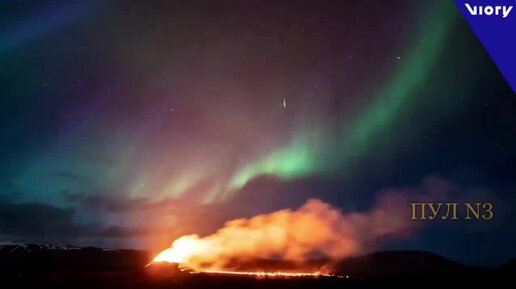 Красота в формате «два в одном» - извержение вулкана и северное сияние