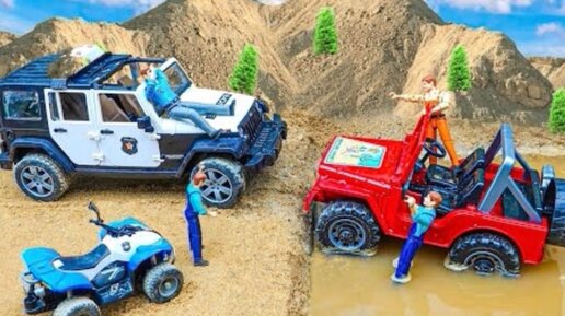 Сборник видеороликов об игрушечных машинках, спасает полицейскую машину скорой помощи и пожарную машину от руки в пещере