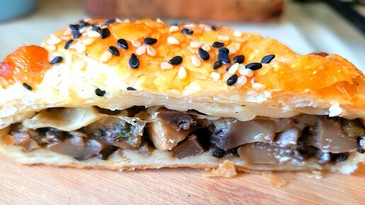 Пирог с грибами и сыром на слоеном тесте