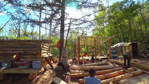 СТРОЙКА НАБИРАЕТ ПУГАЮЩИЕ ОБОРОТЫ. ПОЯВЛЯЕТСЯ ДЕРЕВНЯ В ТАЙГЕ)))