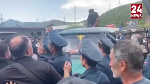 Стычка в ходе протеста в Тавуше: машина "Еркрапа" пыталась пробиться через заблокированную дорогу