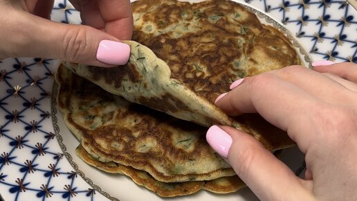 Вкусный перекус. Лепешки с зеленью и зеленым луком.